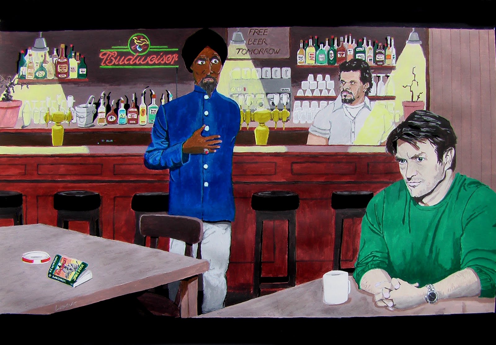 I've finished my new painting. It's a scene of "The Tomb", at Julio's bar.
